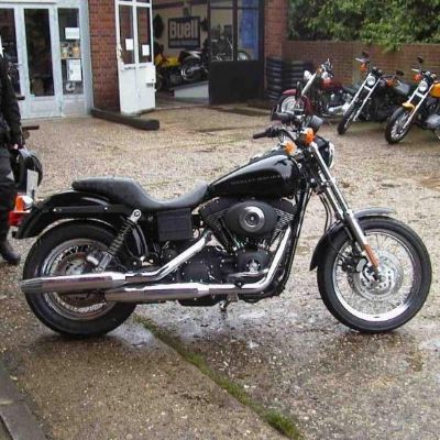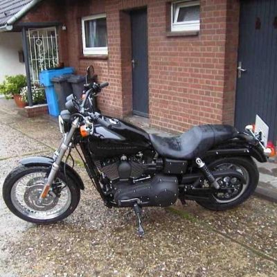 Harley-Davidson (HD) FXDX Dyna Super Glide Sport ------------------------------------------------------- Meine schwarze Schönheit hab' ich mir im Juni 2000 zugelegt und hat mit mir dann auch bisher ca. 71.000km bewältigt. Und bis heute ist dann, bis auf ein Paar selbst gebauter Packtaschenhalter der kleinen dezenten Art, eigentlich auch noch alles im Originalzustand!! (...natürlich außer den diversen ja immer mal wieder benötigten Verschleißteilen!)