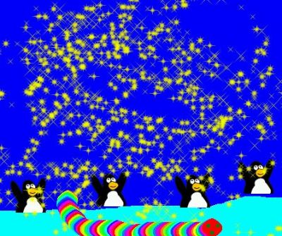 Hier mal ein paar kleine Kunstwerke einer -mittlerweile auch nicht mehr ganz so- kleinen Freundin ( erstellt 2004/05 mit TuxPaint 0.9.13 von New Breed Software ) :